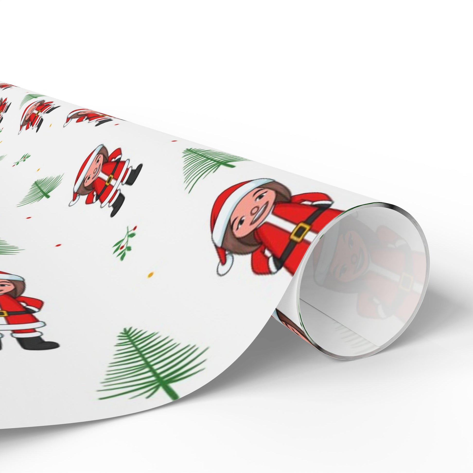 Bright, cheerful holiday wrapping paper featuring our exclusive Sandra Claus Female Santa design alongside whimsical pine trees and mistletoe. The paper feels substantial and prints crisply, so colors stay bold and edges look neat when you fold and tape. Add a touch of inclusivity to your gift opening this year!